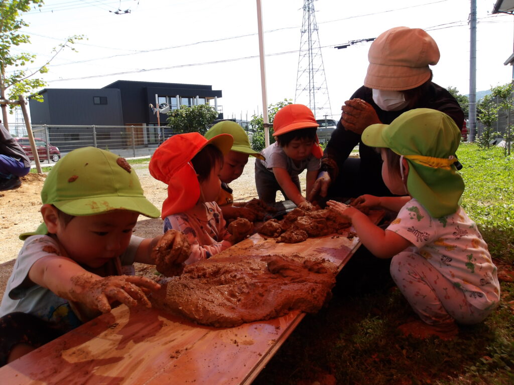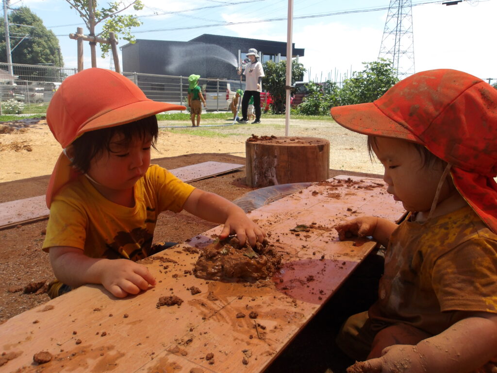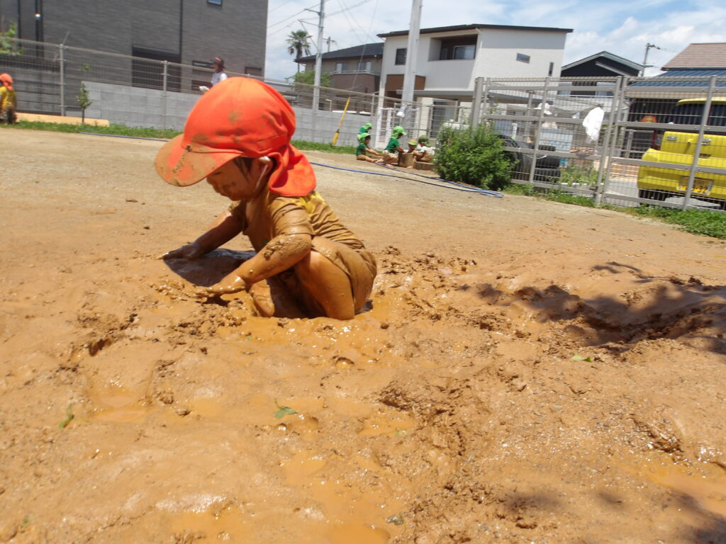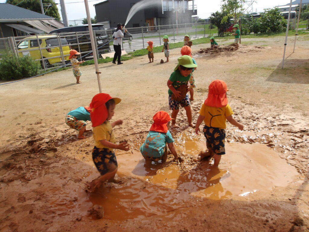 今年の夏も猛暑日が続き、短時間の戸外遊びとなりましたが、ぽかぽか保育園の子ども達は泥や水遊びを楽しみました。「明日、またしような。」「もう、お部屋に帰るの?」「もっと遊びたい。」と言葉を交わしながら元気に過ごしました。
