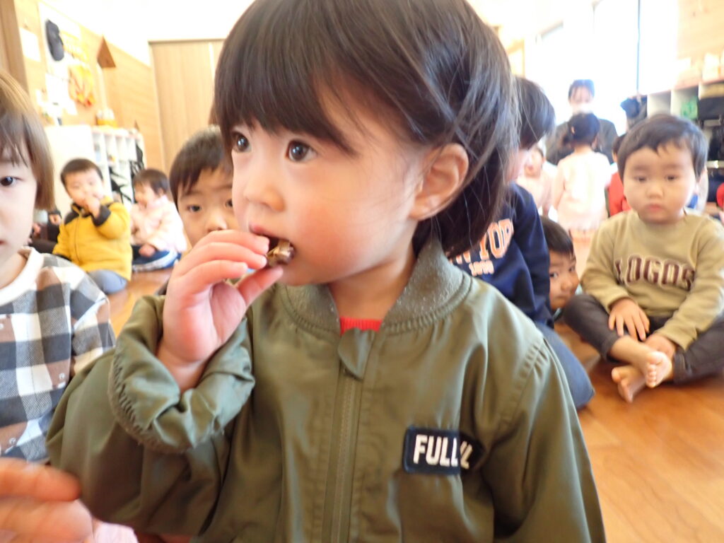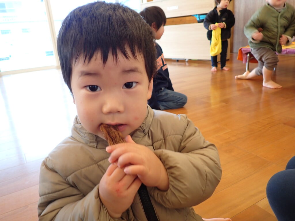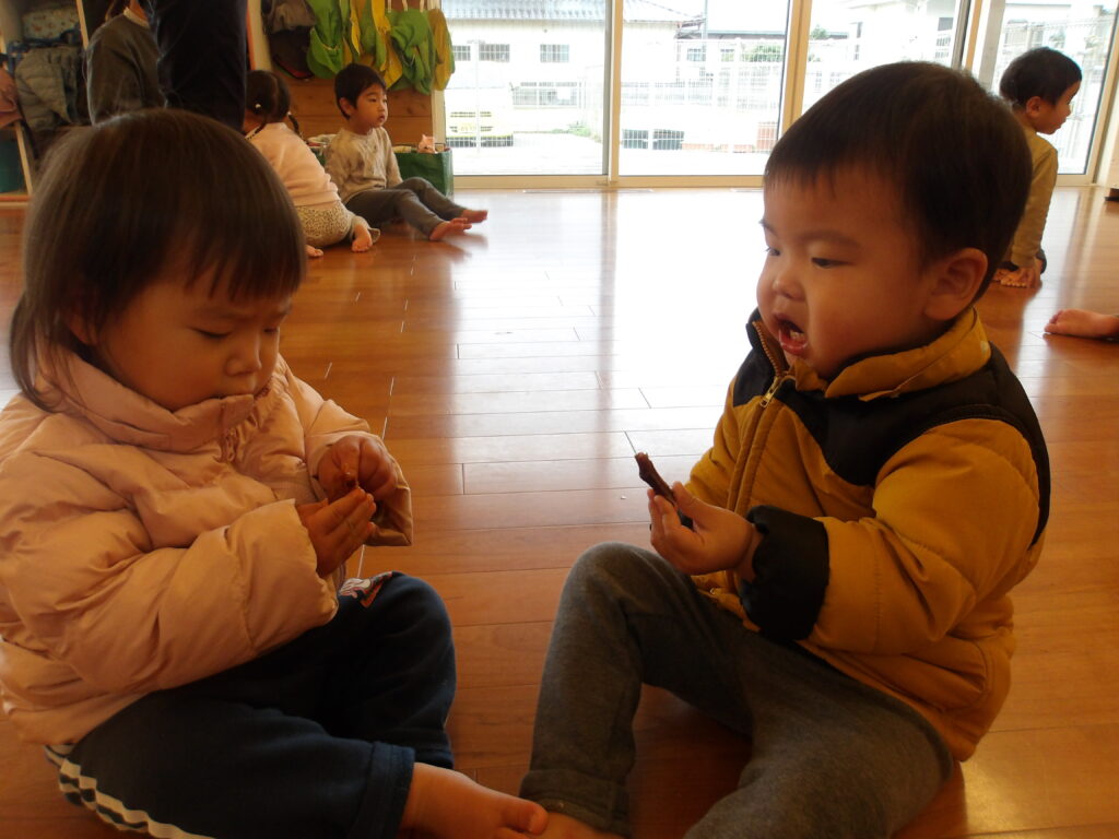 お供えをしていた「干柿」(園で作ったもの)を皆で食べました。